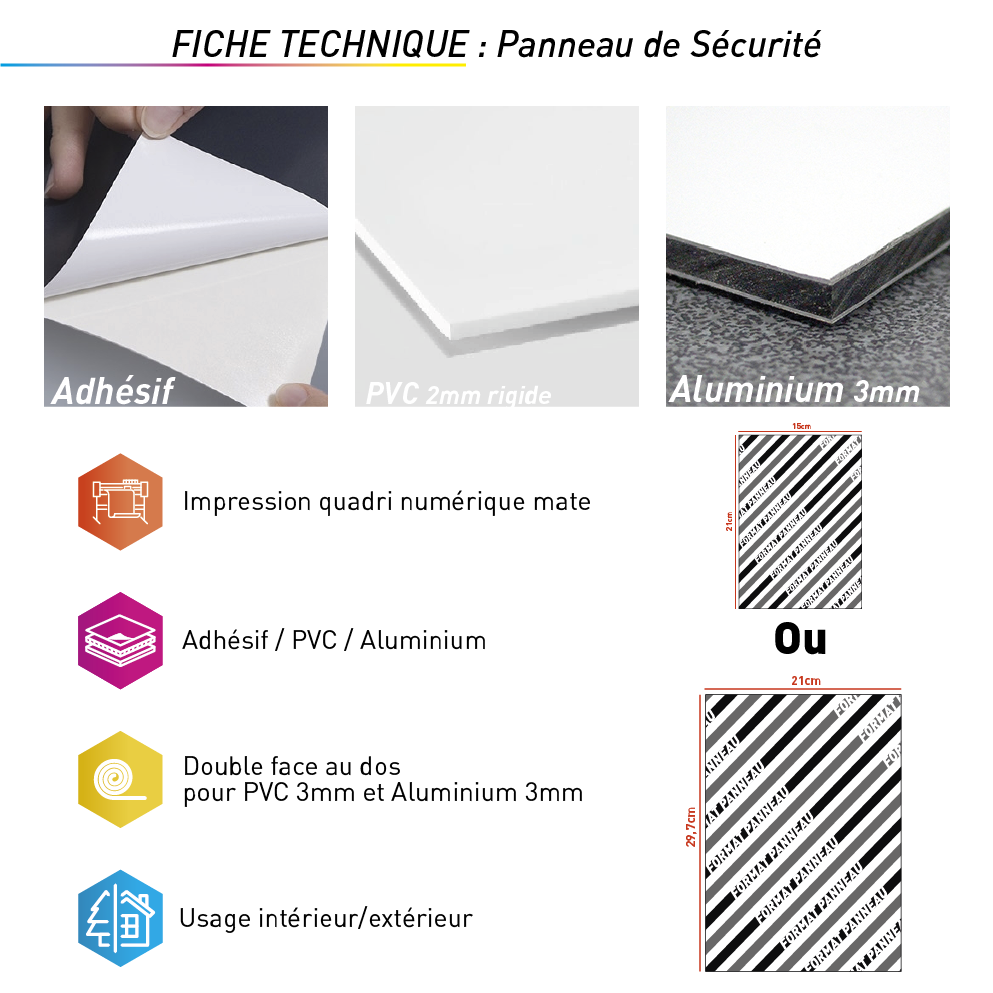 Panneaux aux choix : Alu 3mm ou PVC 2mm rigide ou Adhésif.